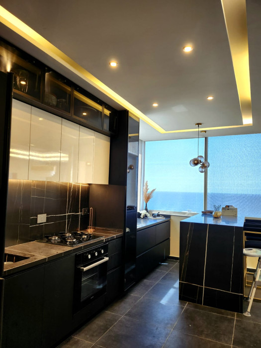 first floor 110m consists of salon + dining room + kitchen + guest bathroom + 1 master bedroom + helpers room + toilet -