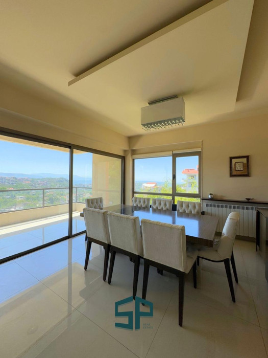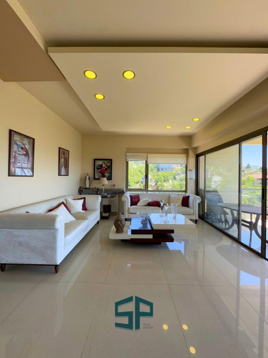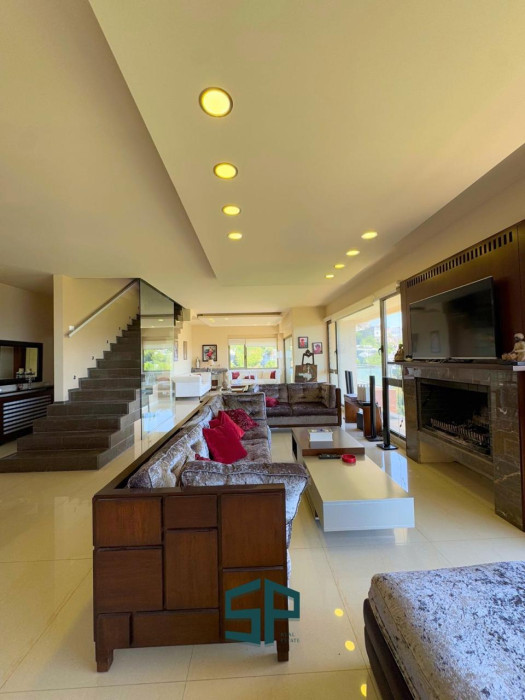 duplex - fully furnished / first floor 3 salon + dining room + kitchen + chimney + guest bathroom + 1 master bedroom + helpers room and toilet / big balcony and open view - second floor : 4 master bedrooms + large TV room + kitchenette + guest bathroom + terrace and open view / 3 udg parking / cave